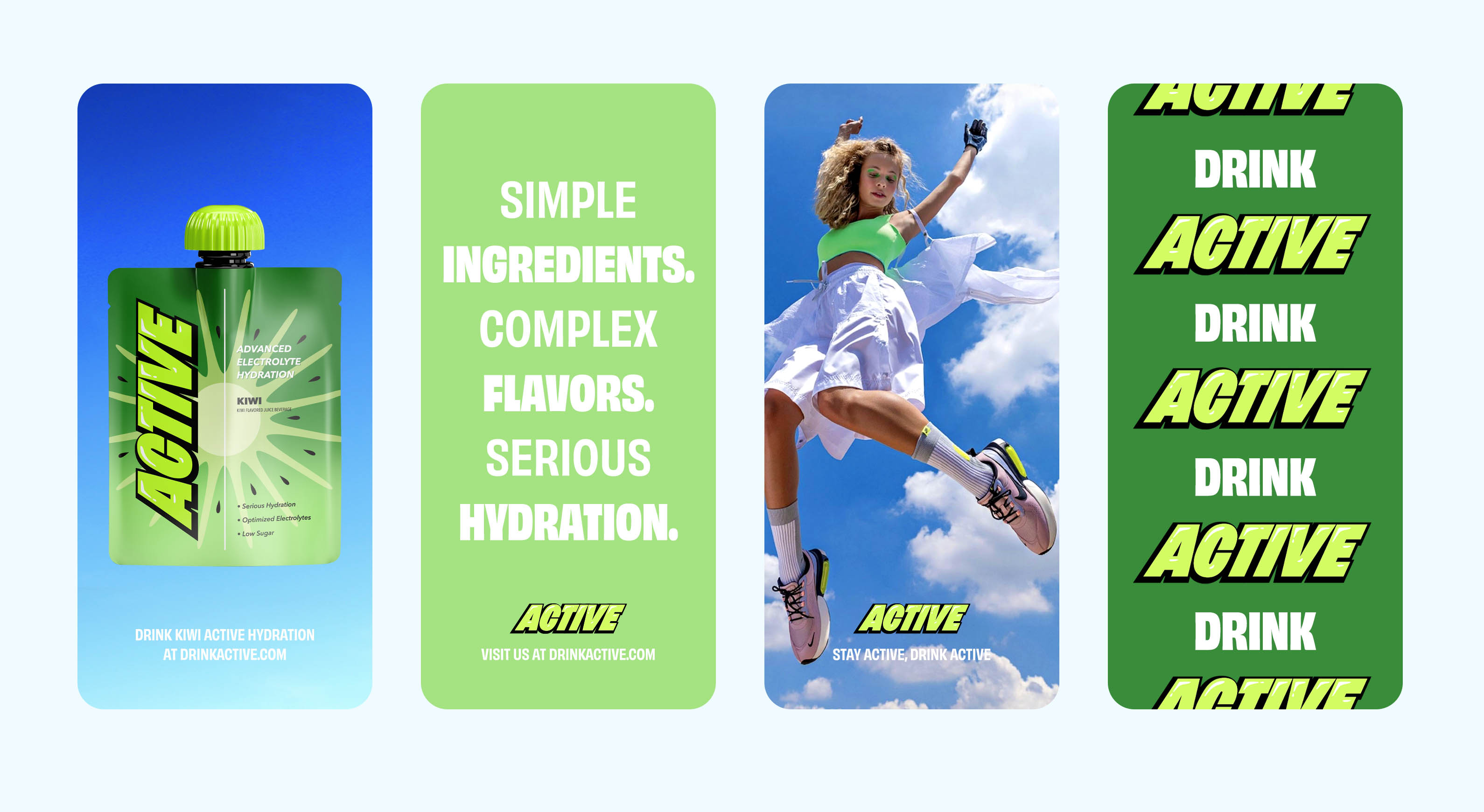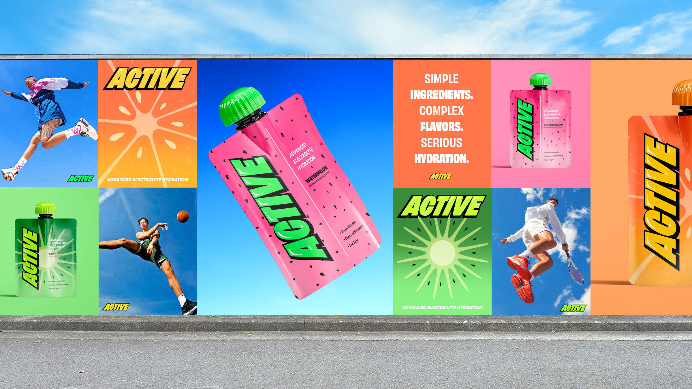 Brand identity and packaging design for a new line of advanced hydration drinks, formulated for exercise or on-the-go.
