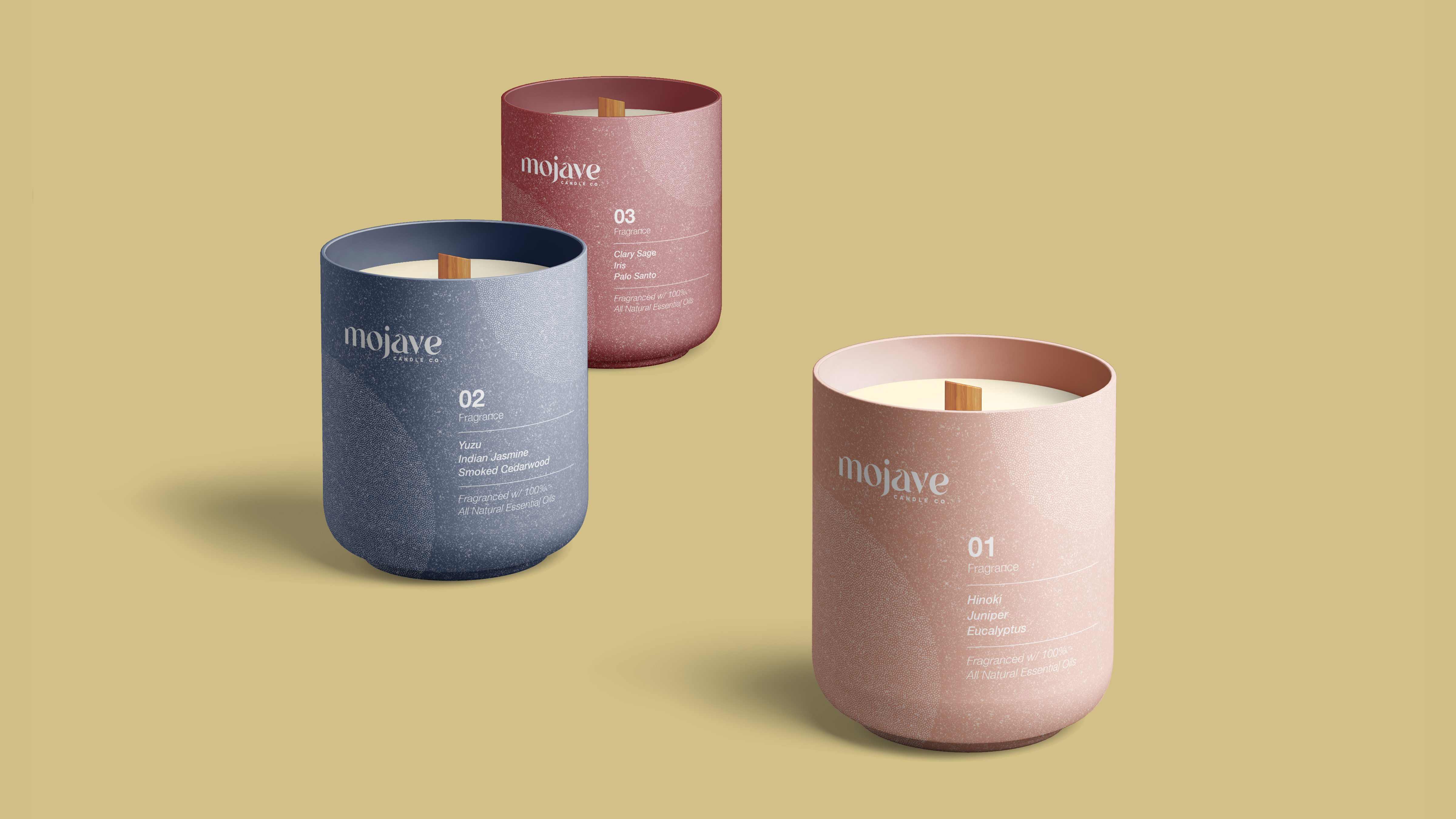 Brand identity and packaging for a new candle company inspired by the scents of the Mojave Desert.